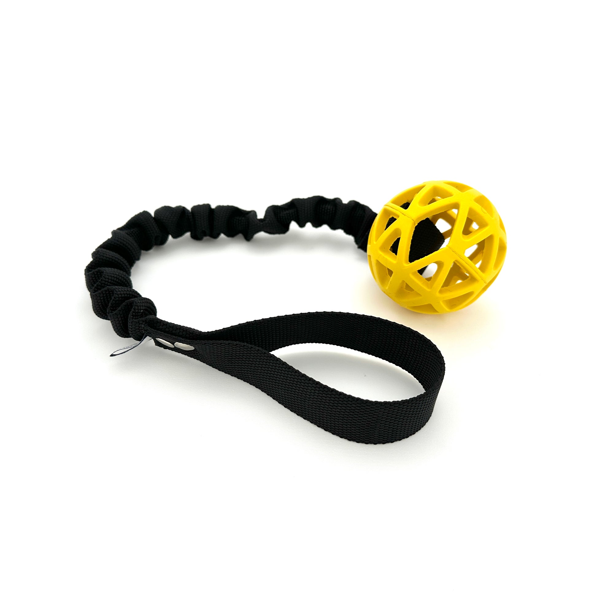 Apollo från Bistos är en smart och hållbar träningsleksak som kombinerar en mjuk gallerboll med ett expanderhandtag - perfekt för både kastlekar, dragövningar och motiverande belöningar. Bollen är tillverkad av följsamt gummi som är skonsamt för hundens mun och lätt att greppa, medan det elastiska handtaget dämpar ryck och ger en behaglig känsla i handen.
