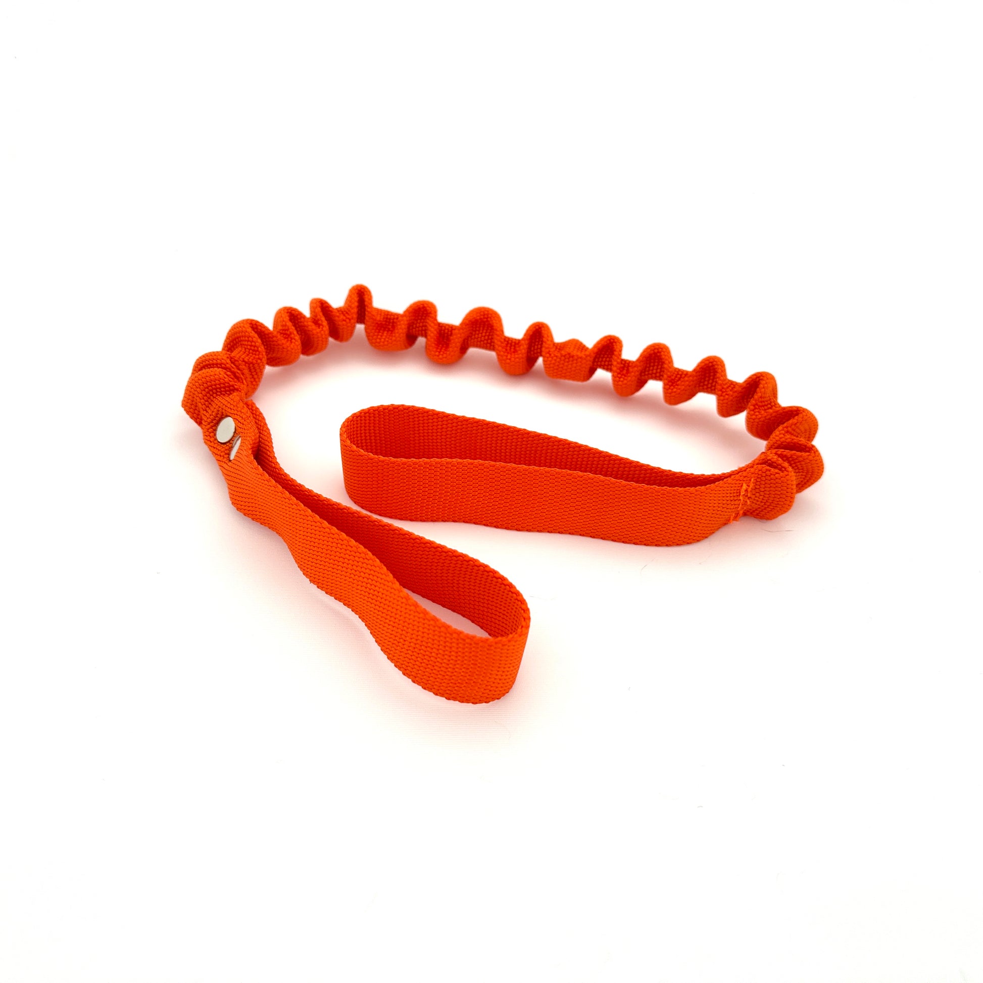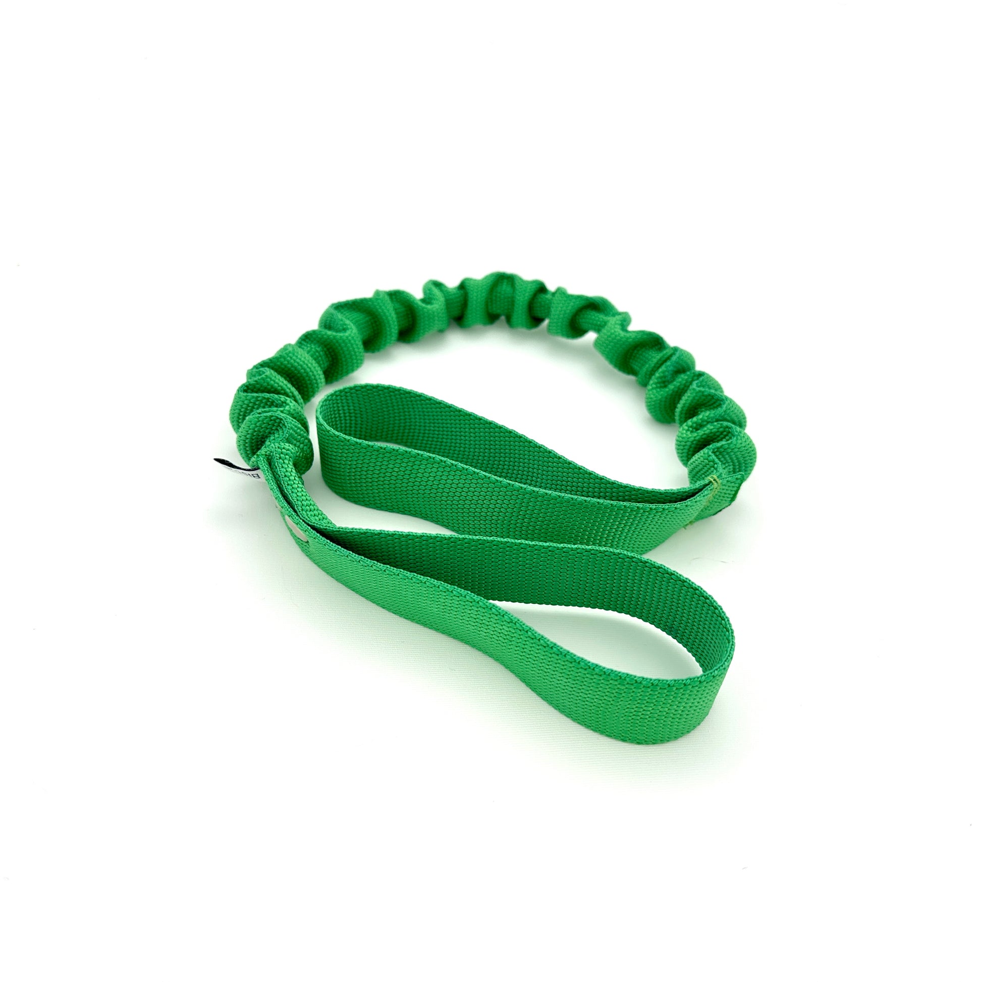 Med Bistos expanderhandtag gör du enkelt om en boll, fläta eller annan favoritleksak till en riktigt rolig kampleksak. Du fäster det genom att trä öglan genom sig själv - perfekt om leksaken har ett hål, ett litet handtag eller en ögla. Den elastiska delen ger skön dämpning när hunden rycker till, vilket gör dragleken både roligare och snällare mot armar och nacke.