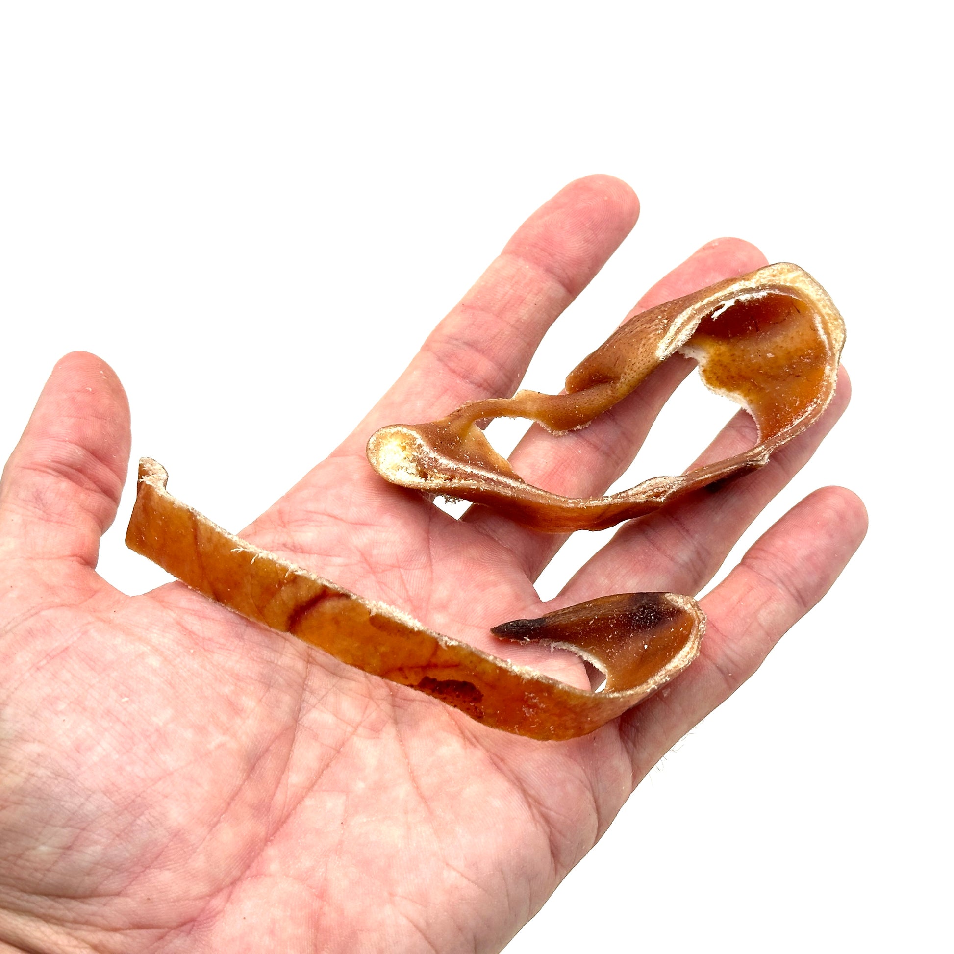 Strimlorna är tunna och krispiga, vilket ger ett lättare tuggmotstånd som även passar känsliga tänder. Det här är ett utmärkt alternativ till större och fetare grisöron - samma smak, men i ett mer hanterbart format. Säljs styckvis.