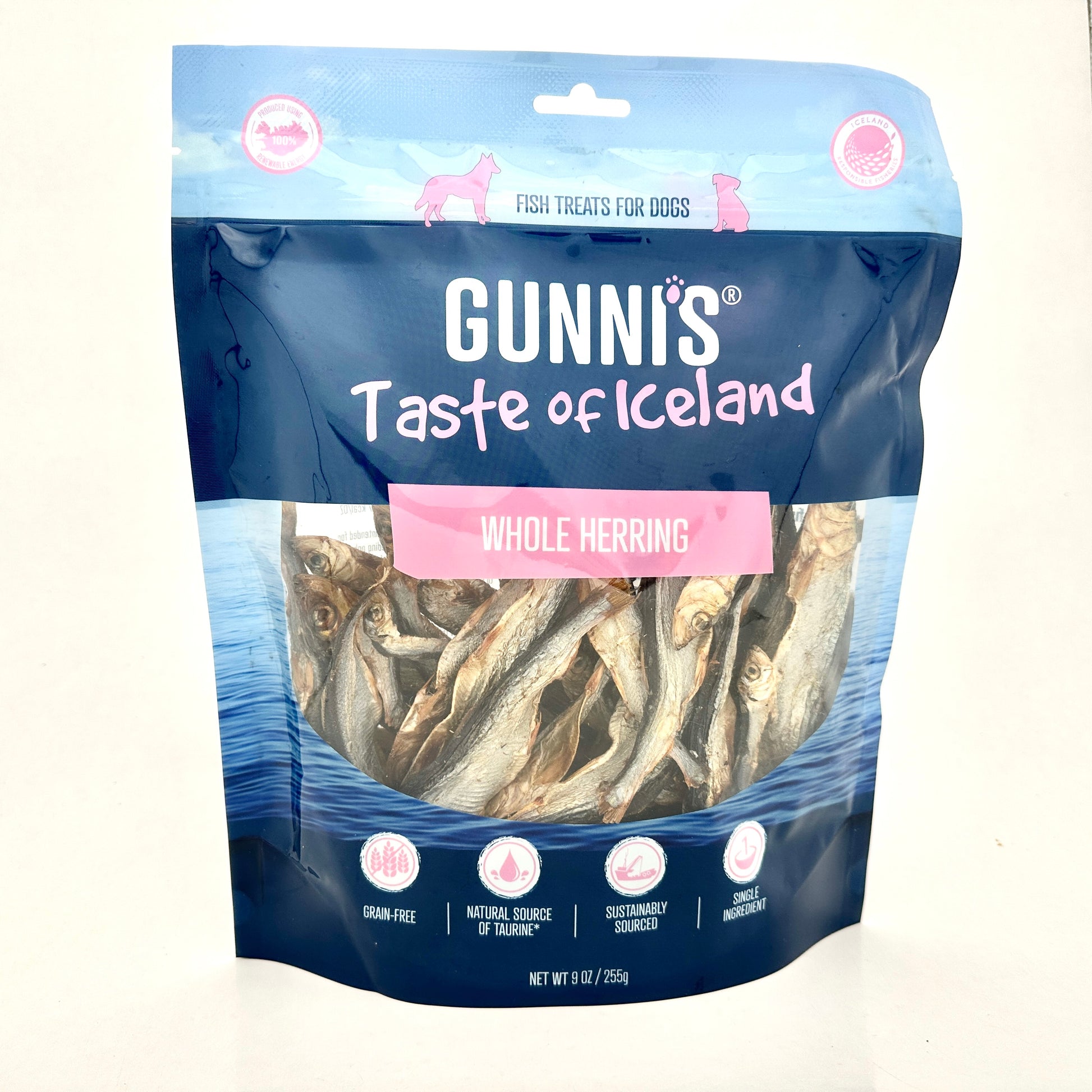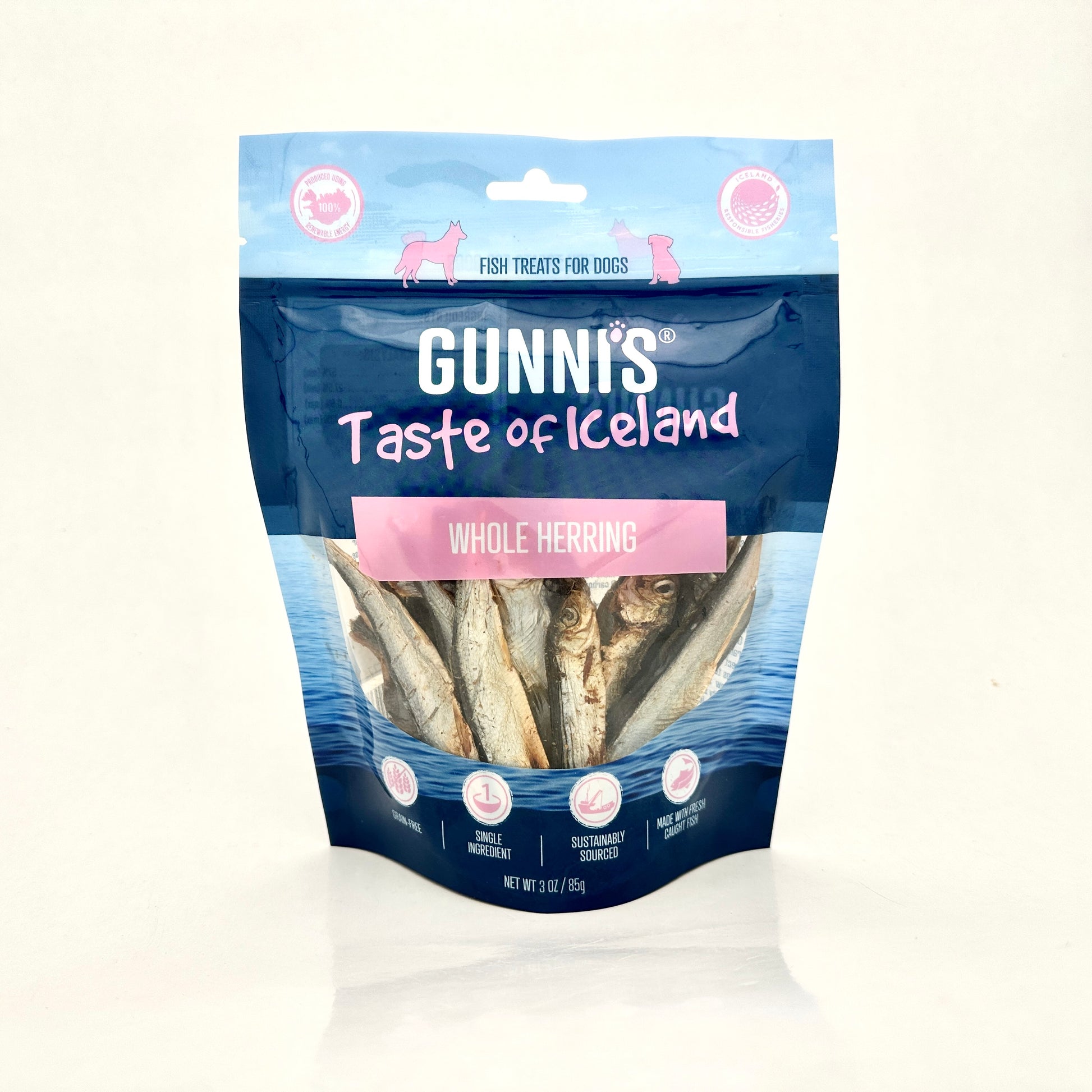 Hela torkade småsillar från Islands kust - ett naturligt hundgodis som doftar rejält och lockar även den mest kräsna hunden. Sillarna är lufttorkade samma dag som de fångas och innehåller inget annat än just sill - varken tillsatser, spannmål eller konserveringsmedel.
