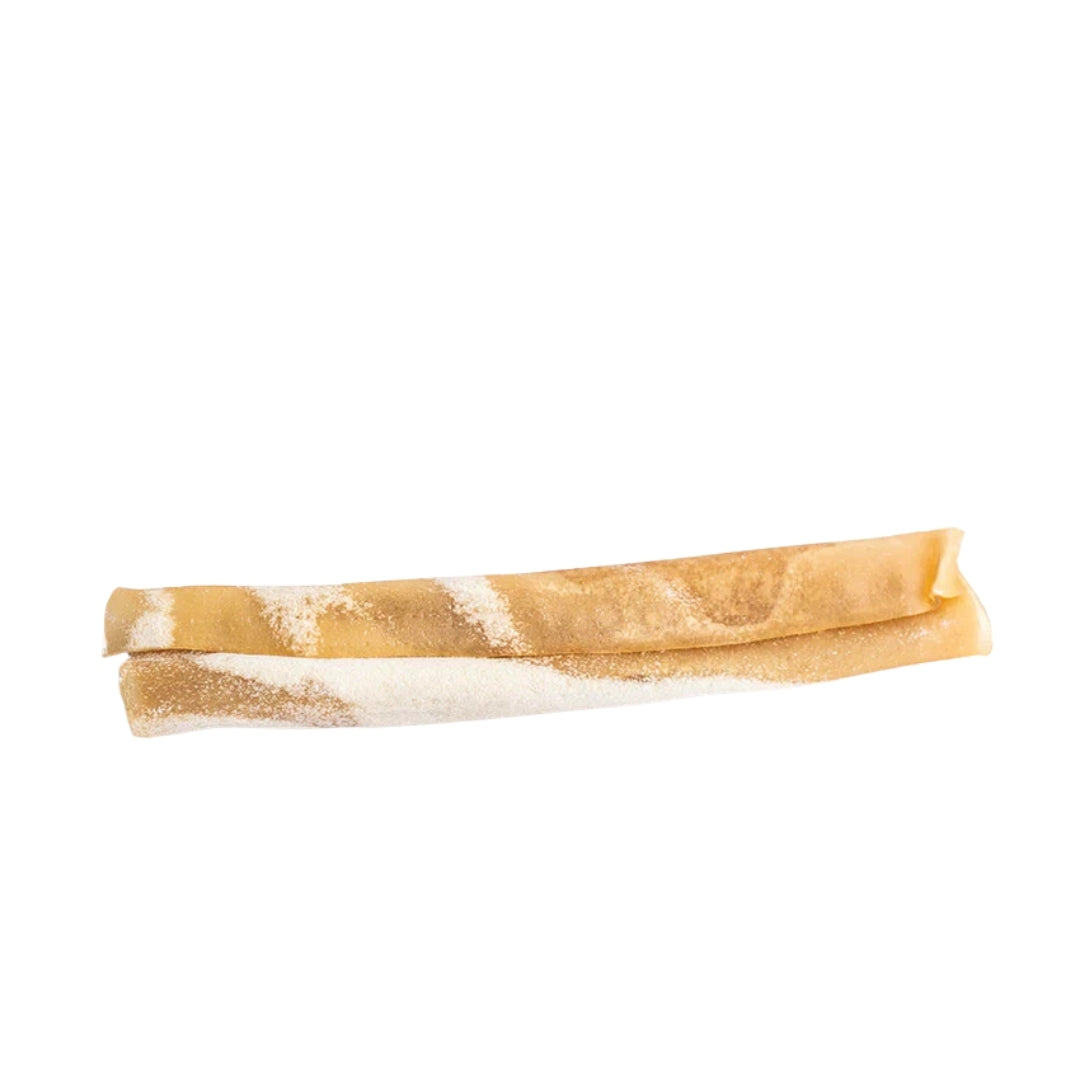 Kerotuggs nötrulle premium är ett smakrikt och hållbart tuggben som ger din hund en rejäl tuggupplevelse. Den är tillverkad av 100% svensk nöthud, inklusive narvhuden, vilket ger ett hårdare tuggmotstånd och gör tugget mer långvarigt - därav namnet "premium." Denna nötrulle är perfekt för mellanstora och stora hundar som gillar att tugga en stund.