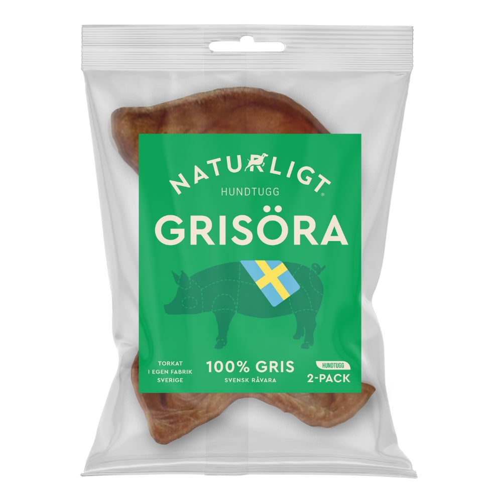 Grisöron är en klassiker bland naturliga hundtugg - och dessa kommer från svenska grisar, helt utan tillsatser eller konstgjorda ämnen. Öronen är varsamt ugnstorkade för att bevara smak och näring, och är ett smakrikt och segt tugg som passar hundar i alla storlekar.