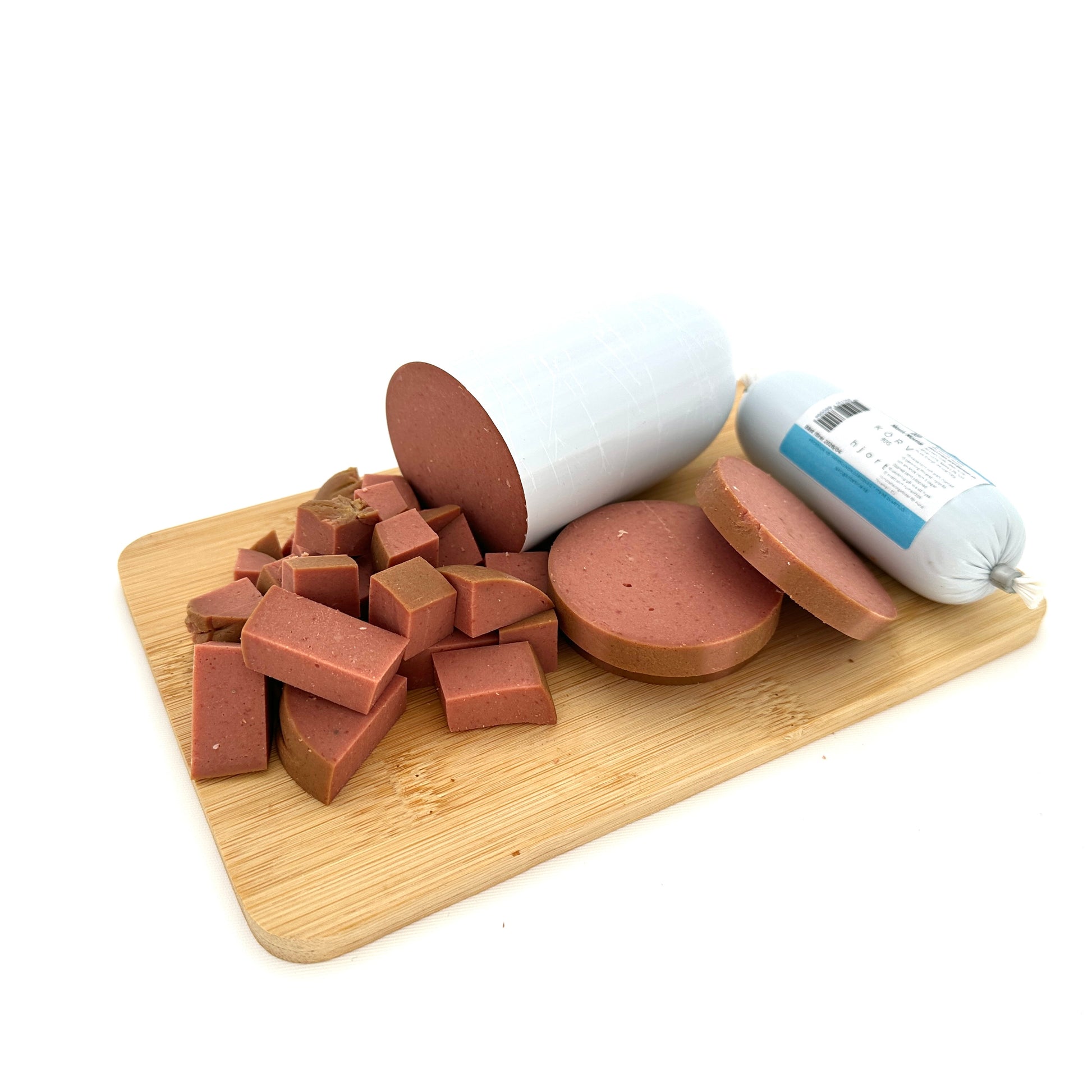 Tapioka är ett naturligt förtjockningsmedel som utvinns ur maniokrot - helt smaklöst, glutenfritt och skonsamt för magen. Det ger korven sin fasta men mjuka konsistens, vilket gör det enkelt att skära upp bitar i valfri storlek utan att det kladdar.