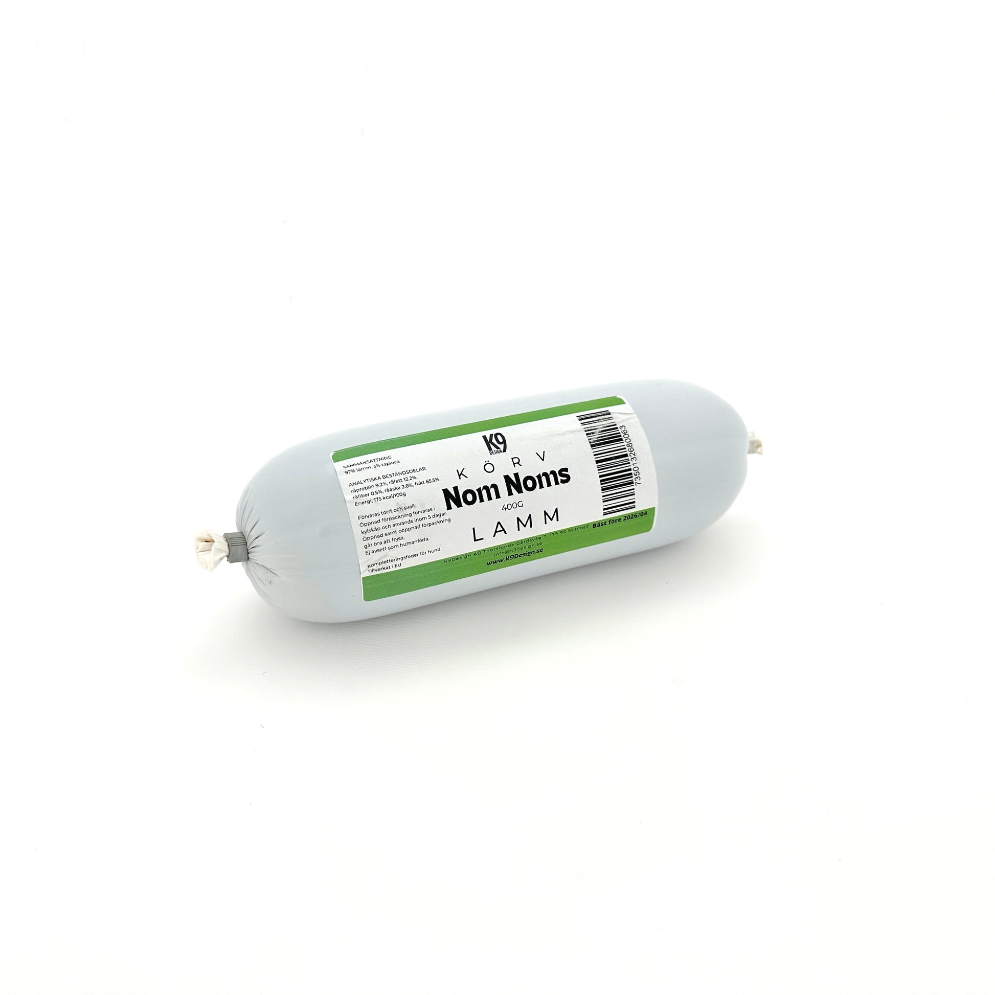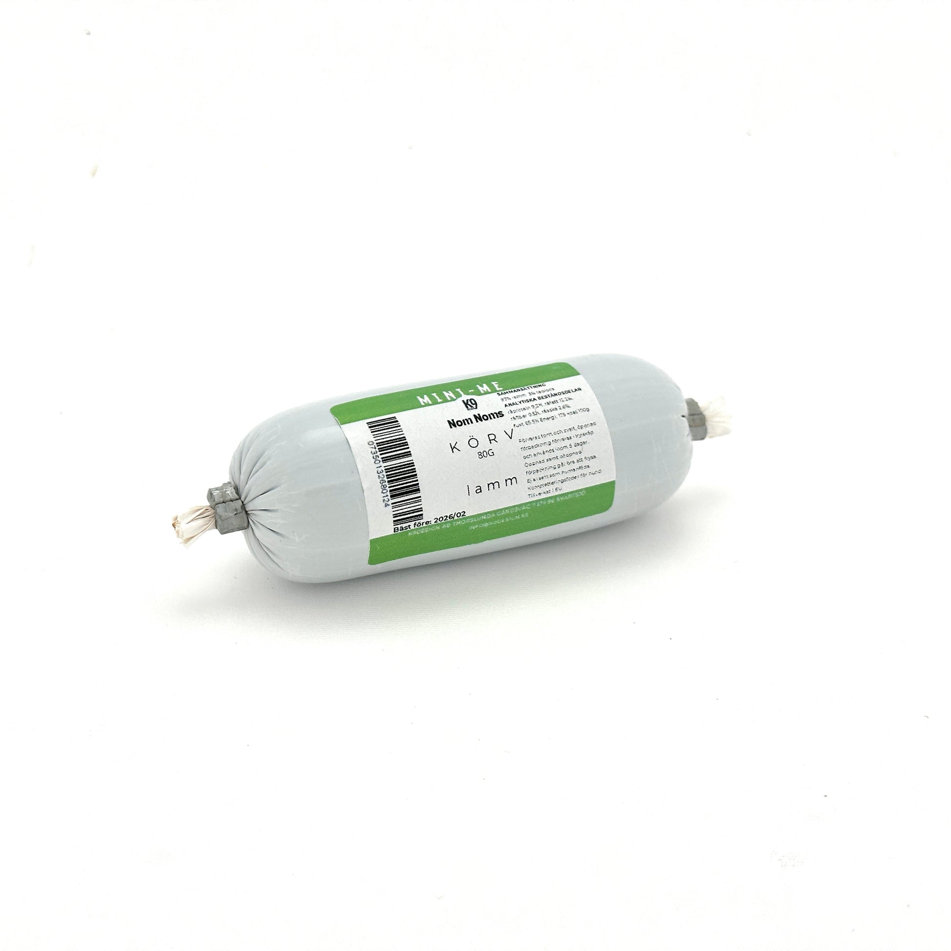 Nom Noms KÖRV av lammkött är ett mjukt och formbart hundgodis tillverkat av 97% lamm och 3% tapioka - ett snällt och smakrikt singelprotein som passar utmärkt för känsliga magar. Korven är ångkokad och vakuumförpackad, vilket gör att den håller i rumstemperatur tills du öppnar den.