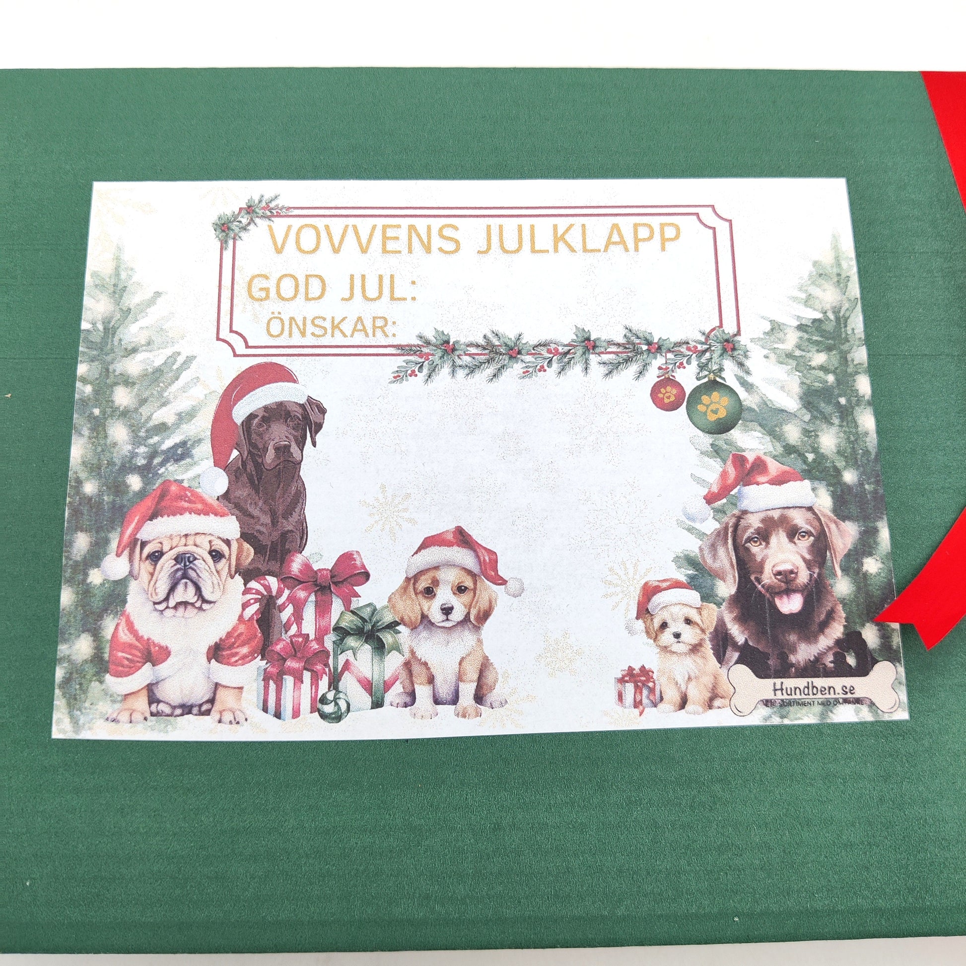 Vovvens Julklapp är framtagen för att göra julen lite extra speciell för de fyrbenta familjemedlemmarna. Paketet innehåller en härlig blandning av svenskt godis och tugg, allt utvalt för att passa små hundar eller hundar som föredrar lättare snacks. Variation, kvalitet och naturliga råvaror står i fokus - precis som alltid hos Hundben.se.